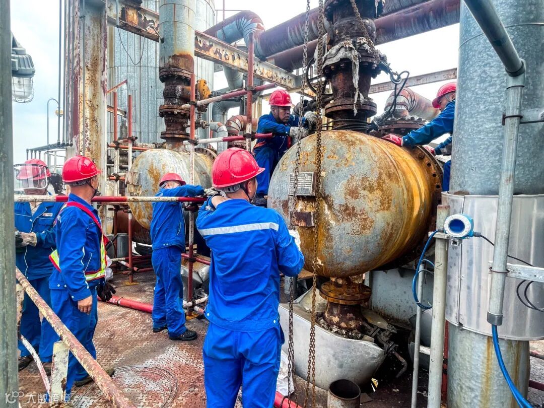 面临现场环节复杂多变、交叉作业等不利情况。三中心上下联动,安排4个车间抽调精兵112名,围绕检修重点和主线,提前筹划。检修开始前搭设脚手架近35处。根据设备检修情况和现场施工进度,倒排工期、全力推进,严格复核吊装作业方案,统筹检修作业现场人、机、料到位情况,加强检修项目统筹进度管理,全面实施吊装作业安全网格化管理。