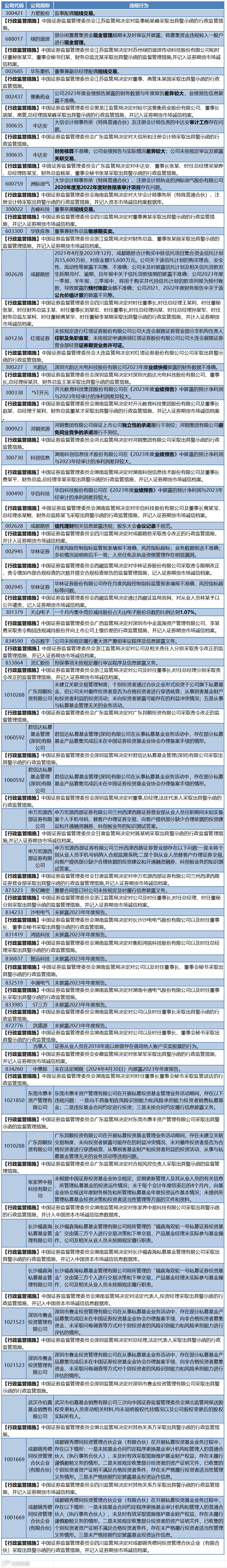 2024年8月19日-8月25日,证监会对2个对象立案调查;证监局作出12份行政处罚决定书,46份行政监管措施决定书。