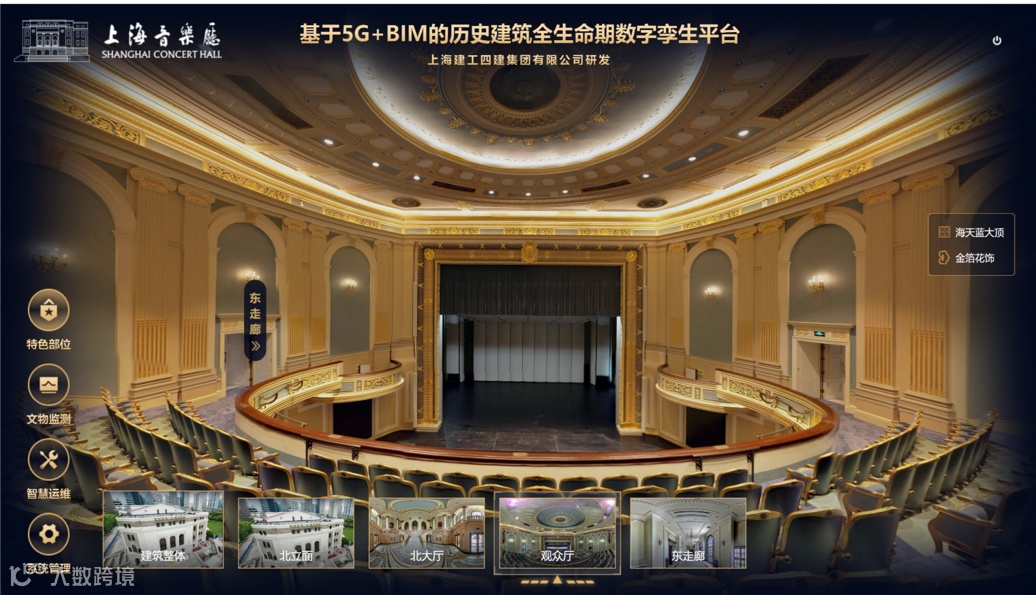 再如,针对上海音乐厅文物建筑保护需求,我们在一年的修缮中,自主研发了国内首个基于5G+BIM的历史建筑全生命期数字孪生平台,对这座建于1930年的音乐厅进行了实景逆向建模,为历史建筑数字模型整合、历史信息集成、传统工艺传承、特色部位保护、健康安全监测、智慧运维管理提供整体解决方案,在行业内尚属首次,极大地提升了修缮效率和效果,拓展了文物和历史保护建筑等城市更新业务的发展空间。