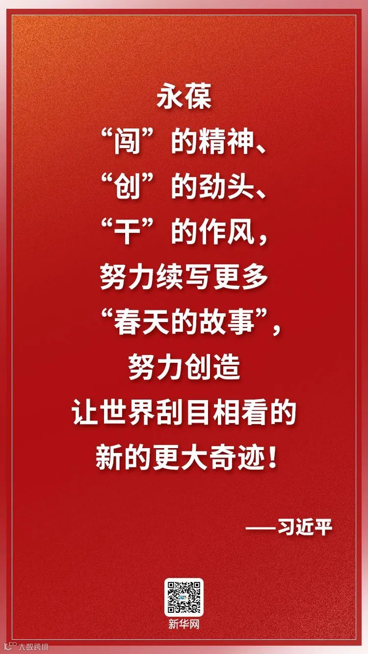 四十载波澜壮阔,新征程催人奋进。经济特区的沧桑巨变是一代又一代特区建设者拼搏奋斗干出来的。在新起点上,经济特区广大干部群众要坚定不移贯彻落实党中央决策部署,永葆“闯”的精神、“创”的劲头、“干”的作风,努力续写更多“春天的故事”,努力创造让世界刮目相看的新的更大奇迹!