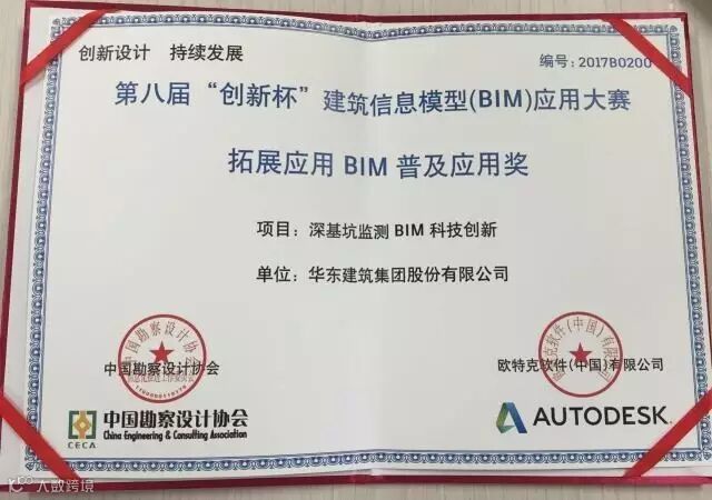 2017年中国勘察设计协会与欧特克软件(中国)有限公司共同举办的第八届“创新杯” 建筑信息模型(BIM)应用大赛落下了帷幕。由公司研发中心主导的《深基坑监测BIM科技创新》在本次大赛中荣获“普及应用奖”。