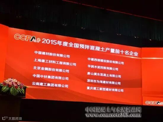 会上发布并授牌的2015年度全国预拌混凝土产量前十的单位依次为: