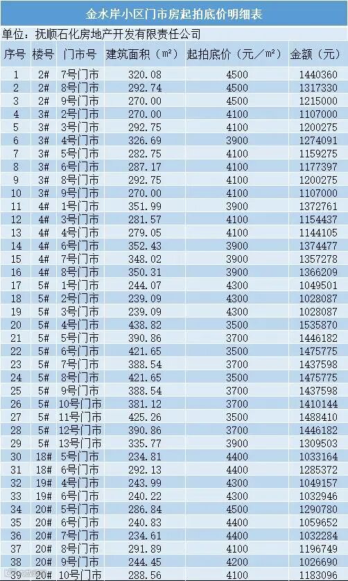 备注:本次房产销售均以房屋现状进行市场挂牌、网上竞买方式出售,转让方不保证房屋设施的正常使用,具体情况以现场实物为准,房屋的基础设施情况意向受让方须在报名前自行了解,拍卖人、转让方及产权交易所对房屋瑕疵等情况不承担保证责任。本房产起拍底价明细表中的价格仅供参考,最终起拍价格和具体拍卖时间以发布的拍卖公告内容为准。