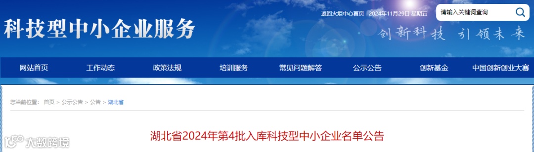 近日,湖北省科学技术厅正式发布了《湖北省2024年第4批入库科技型中小企业名单公告》。