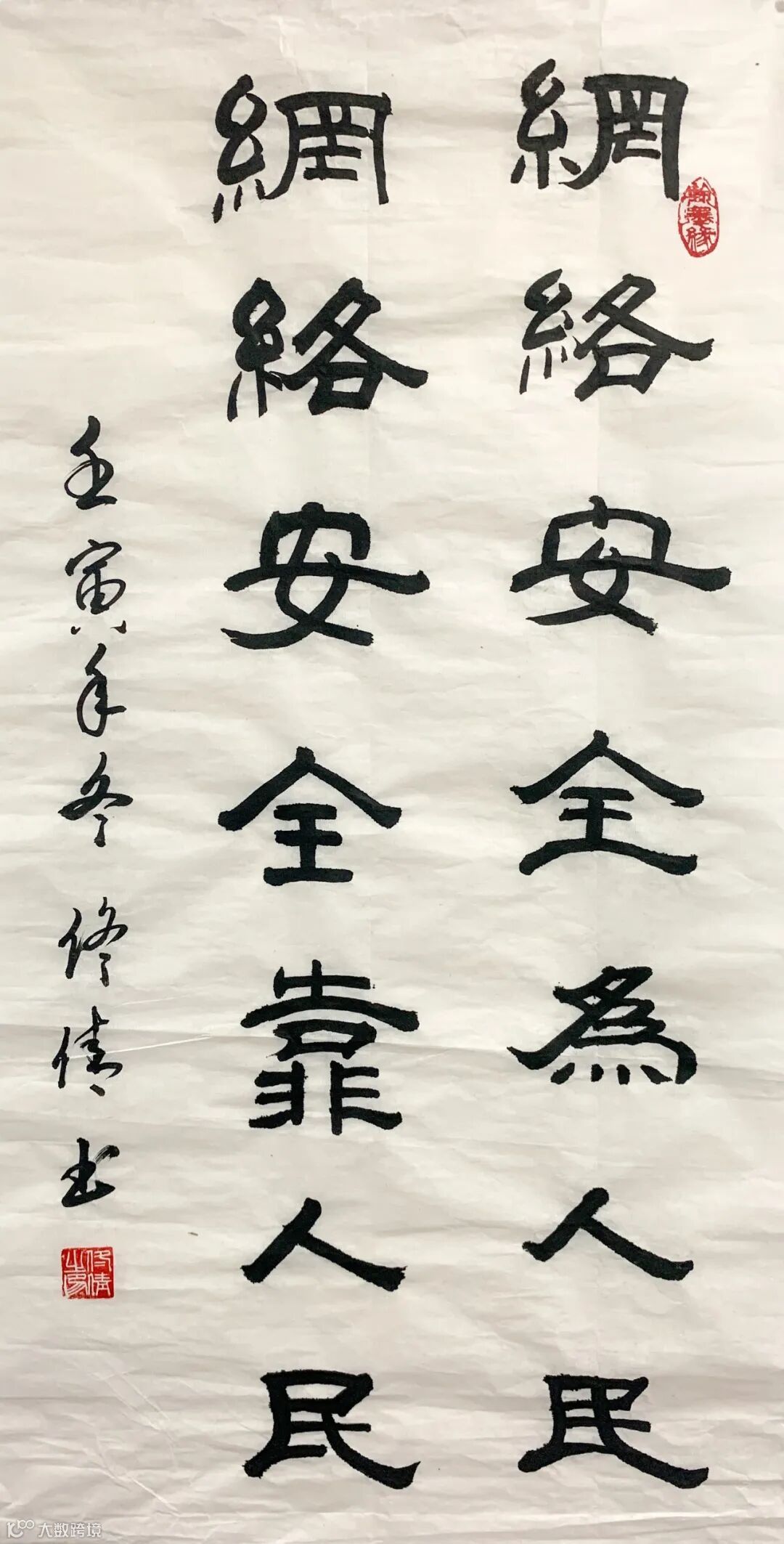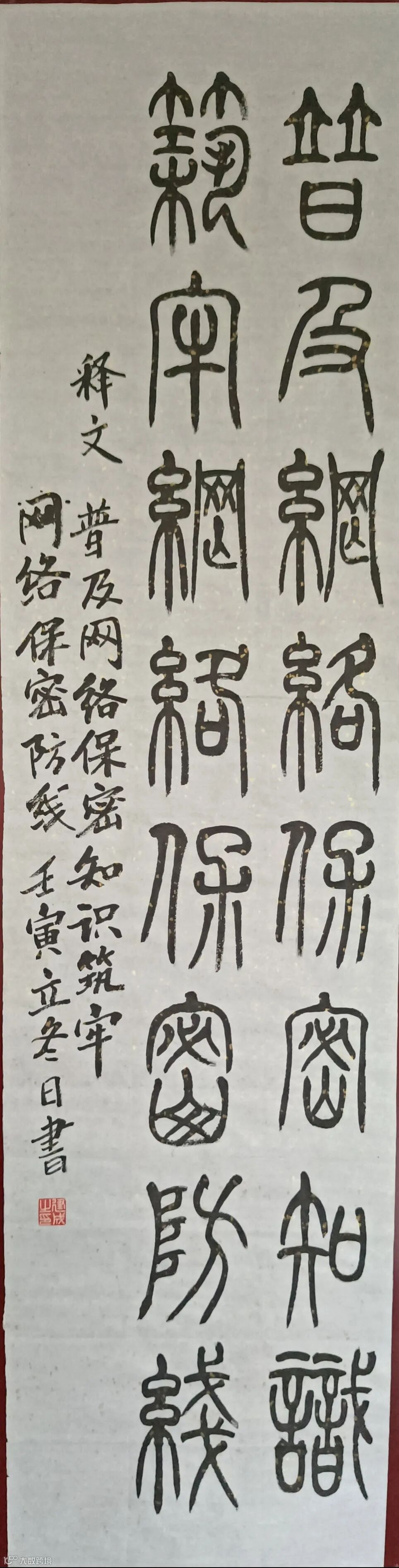11月14—20日是集团公司第三个保密宣传周。活动主题是:“普及网络保密知识,筑牢网络保密防线”。根据公司领导“早部署,早落实,早见效”的要求,公司保密办提前一周对这项工作进行了安排,也得到了直属各单位和广大干部员工的积极响应。现从各单位报送的近百幅书法绘画作品中挑选出一批精品集中进行展示,以此拉开公司2022年保密宣传周的序幕。