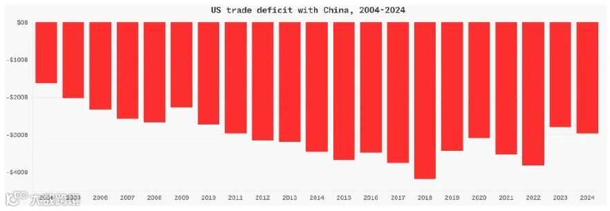 图四、美中贸易长期处于逆差。