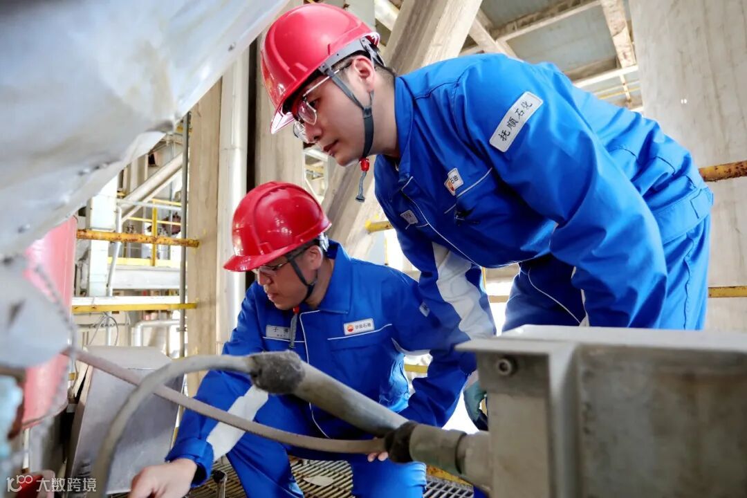 当排查至循环气压缩机框架二层平台时,丙烯味道变得越来越浓郁,张书溢意识到泄漏处一定在附近。他加快循环气压缩机框架平台各设备的检查,最终在三层平台循环气PDS阀门的反吹气管线法兰处发现了泄漏点。
