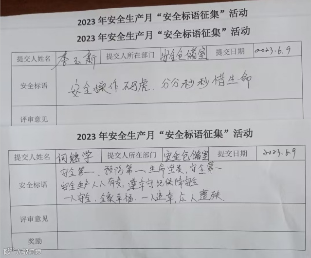 日前,天河经营拜城县天泰物资经营有限公司组织开展了“安全标语征集活动”,广大基层干部职工积极参与,集思广益,写下安全标语,并互相交换评选,营造了良好的安全文化氛围。