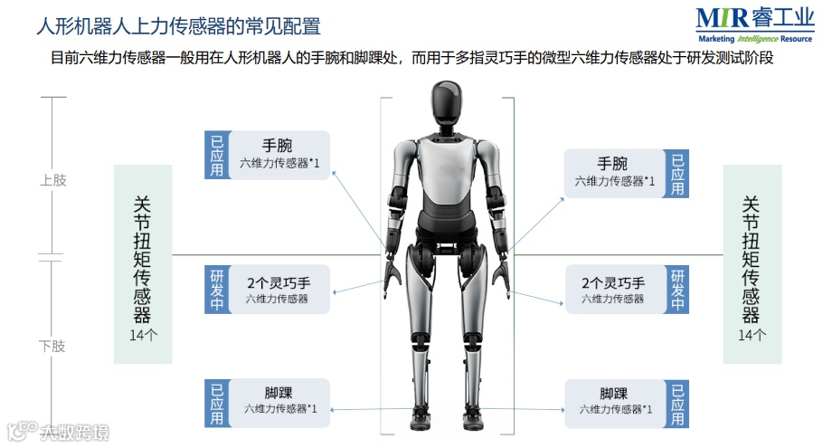 目前六维力传感器一般用在人形机器人的手腕和脚踝处,而用于多指灵巧手的微型六维力传感器处于研发测试阶段。