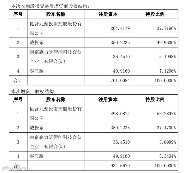 因此,交易完成后,九鼎投资持股53.2897%成为最大股东,拥有南京神源生公司控股权。南京神源生创始人戴振东股权降低至37.47%,成为第二大股东,获利5,637.45万元。