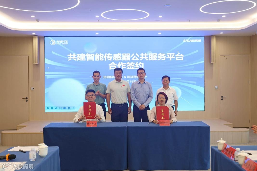 活动现场,光明区科创中心与深圳传感协会签订共建智能传感器公共服务平台合作协议,并与京东工业、传感器专家网、国宸投资、飞安信科技等一批意向入住企业签约。光明科发集团为传感协会颁发“科创生态平台”伙伴成员单位牌匾。