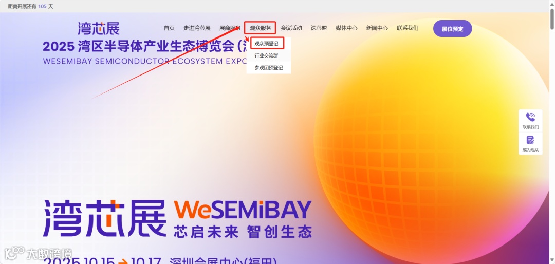 · 官方网站:复制链接 https://www.semibay.cn,使用浏览器打开,首页点击“观众服务”——“观众预登记”。