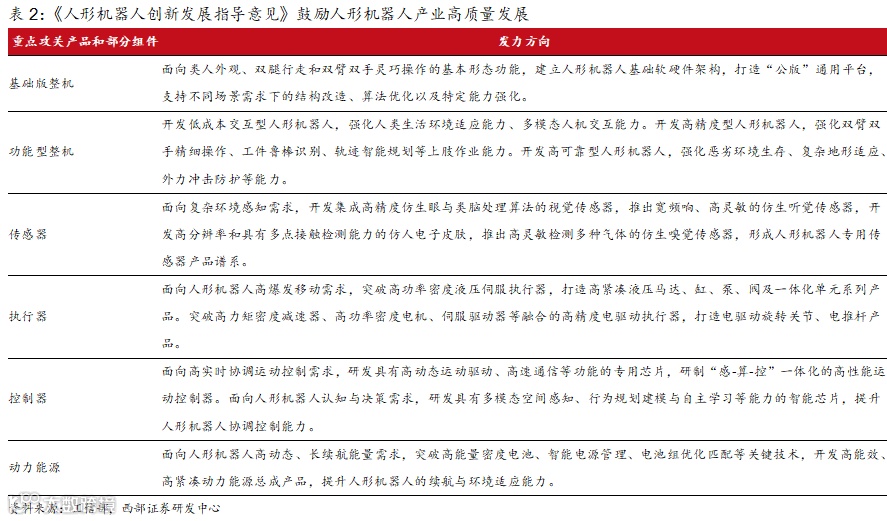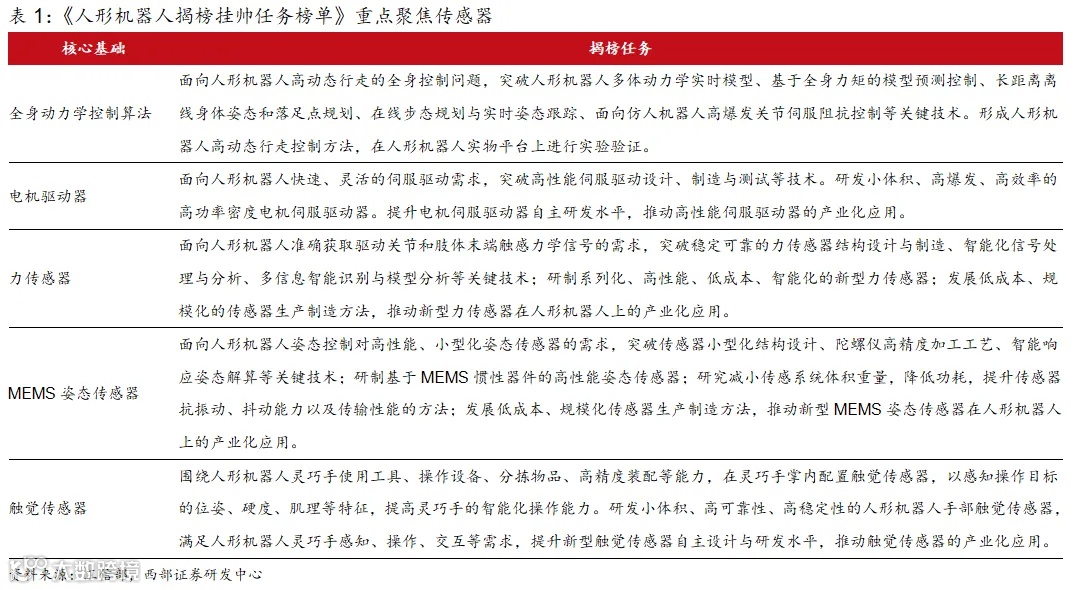 同年10月,工信部印发《人形机器人创新发展指导意见》,要求夯实基础部组件,聚焦人形机器人专用传感器,突破视、听、力、嗅等高精度传感关键技术,提升环境综合感知能力。加速人形机器人低成本、灵活部署应用。