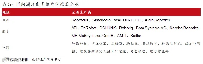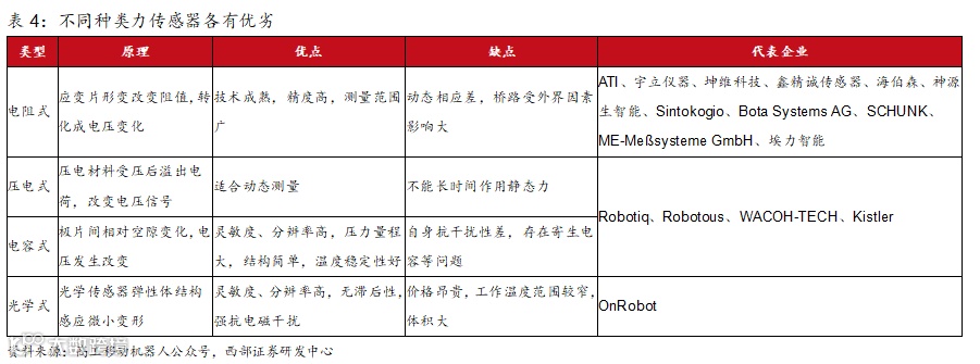 1) 每台人形机器人目前在手腕、脚踝部分共使用4个六维力/力矩传感器,未来随着六维力传感器的技术成熟,在价格下降的同时用量有望提升;