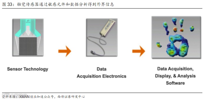 目前,诸多人形机器人和灵巧手都已经开始使用指尖触觉传感器。如特斯拉第二代人形机器人Optimus的十指均搭载了手指触觉传感器,已经可以实现两指捏起鸡蛋的精巧操作,且可以实现对指尖力的准确感知。Figure机器人搭载神经网络系统,可以用快速灵巧的手递苹果给测试员,并实现捏盘子等操作。