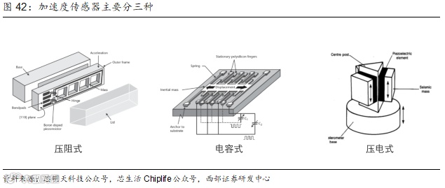 加速度计:检测载体坐标系统独立三轴的加速度信号。根据传感器敏感元件的不同,常见的加速度传感器包括电容式、压阻式、压电式等。