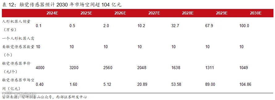 3)假设人形机器人2024年可实现出货1000台,2030实现出货100万台。