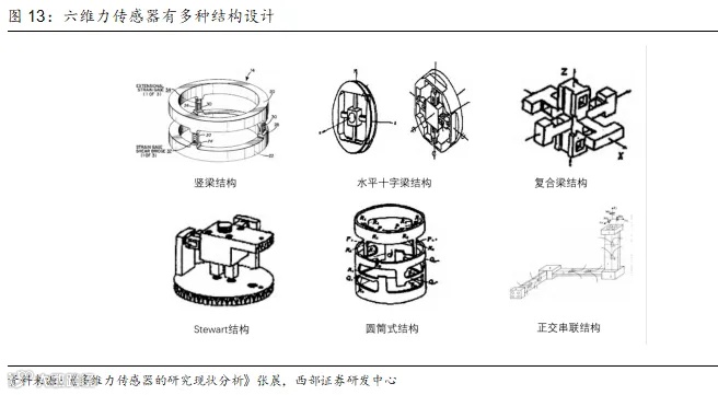 根据所测力的维数不同,力传感器可被分为单轴力传感器和多轴力传感器。常见的有一维、三维和六维传感器,其中后两者属于多轴力传感器,且测量维数越多,收集数据越多,测量结果越精确,研发难度越大。