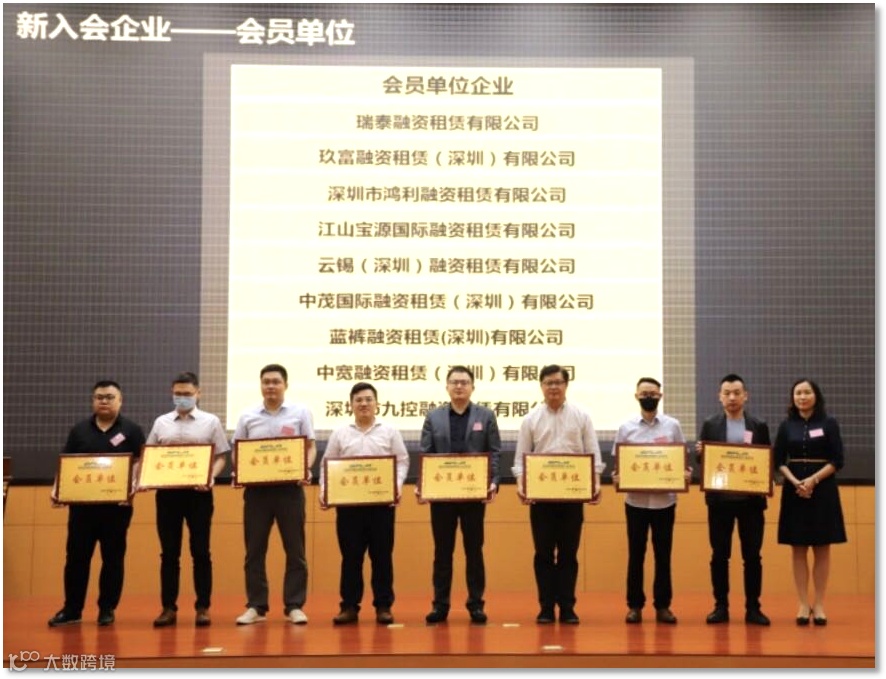 新入会会员单位:瑞泰融资租赁有限公司、玖富融资租赁(深圳)有限公司、深圳市鸿利融资租赁有限公司、江山宝源国际融资租赁有限公司、云锡(深圳)融资租赁有限公司、中茂国际融资租赁(深圳)有限公司、蓝裤融资租赁(深圳)有限公司、中宽融资租赁(深圳)有限公司、深圳市九控融资租赁有限公司。