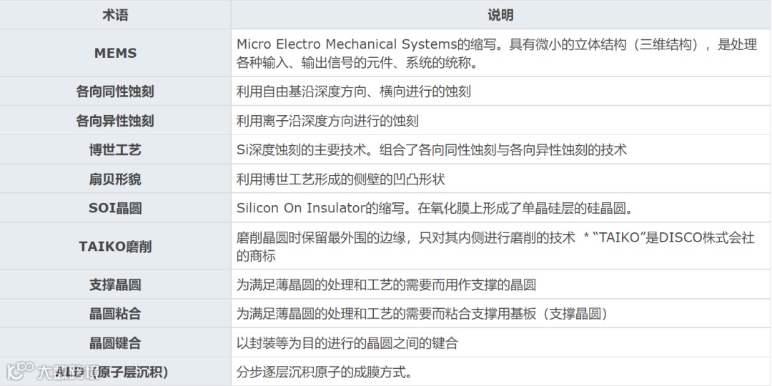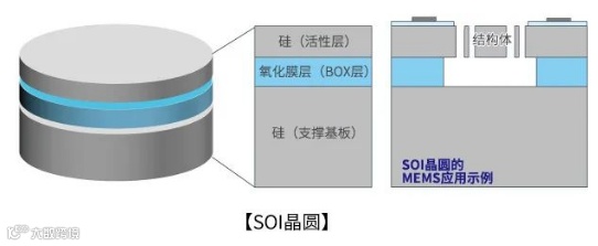 SOI是Silicon On Insulator的缩写,是指在氧化膜上形成了单晶硅层的硅晶圆。已广泛应用于功率元件和MEMS等,在MEMS中可以使用氧化膜层作为硅蚀刻的阻挡层,因此能够形成复杂的三维立体结构。
