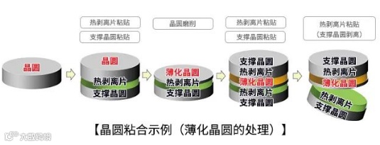 通过使用支撑晶圆和热剥离片,可以轻松对薄化晶圆进行处理等。