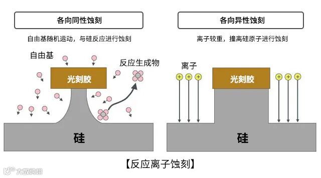 等离子体中混合存在着携带电荷的离子和中性的自由基,具有利用自由基的各向同性蚀刻、利用离子的各向异性蚀刻两种蚀刻作用。