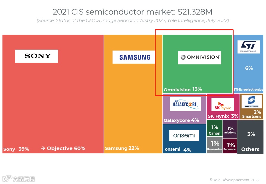 韦尔股份(豪威科技)是中国最大的图像传感器企业,同时也是全球第三大图像传感器公司,据Yole公司2022年CMOS图像传感器产业报告显示,韦尔股份(Omnivision)占据全球13%的市场份额。