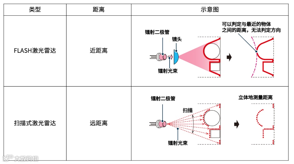 针对测量距离的远近,激光雷达可分为非扫描式(FLASH)激光雷达和扫描式激光雷达。