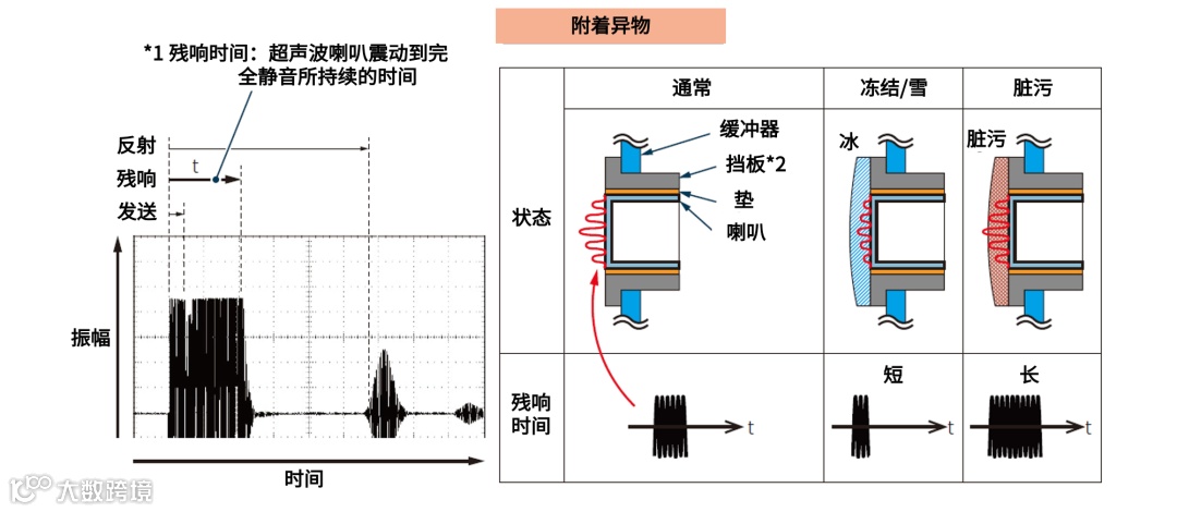 但是强大如超声波传感器可是很怕脏污的,应始终保持表面干净。因为当其被异物附着时,超声波喇叭的震动(残响时间*1)会发生异常。例如超声波喇叭上附着霜(冰)、雪、泥等异物时,会影响超声波喇叭的正常功能。