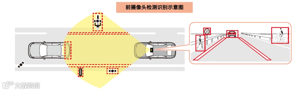 图像传感器通过图像处理识别对象物体,根据驾驶辅助ECU检测到的信息进行内容识别、判断、控制车辆。
