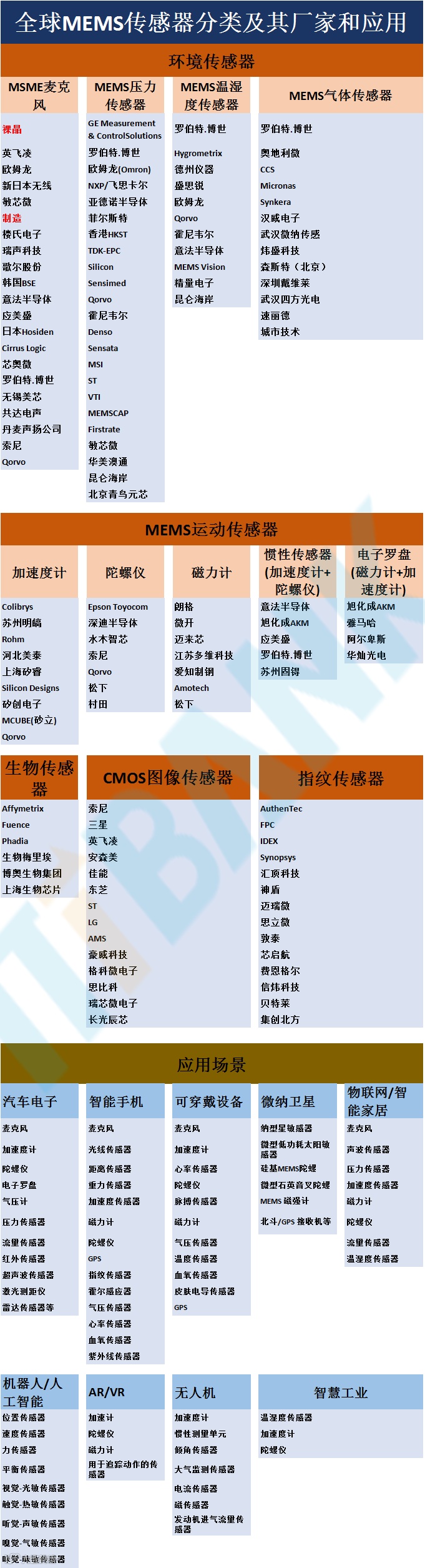二、MEMS传感器分类及厂家和应用