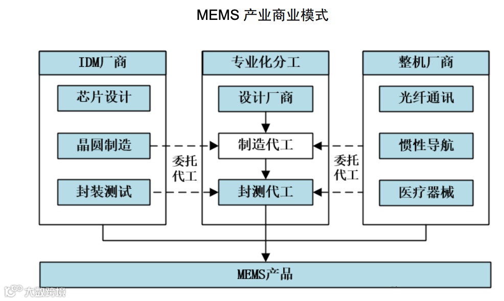在此背景下,纯 MEMS 代工厂与 MEMS 产品设计公司合作开发产品的商业模式将成为未来行业业务模式的主流。类似于传统集成电路行业发展趋势,MEMS 产业将逐步走向设计与制造分立、制造环节外包的模式。