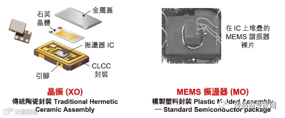 下图是MEMS谐振器与传统石英晶振的对比,MEMS谐振器具有更高的稳定性、可靠性以及更小的体积。