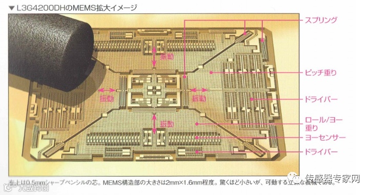 下图是来自日本丰桥技术科学大学,通过高精度传感器拍摄的微米级MEMS机械结构运动情况,可以很直观看到MEMS具有常规的机械系统结构,但是尺寸做到了微米级甚至纳米级。