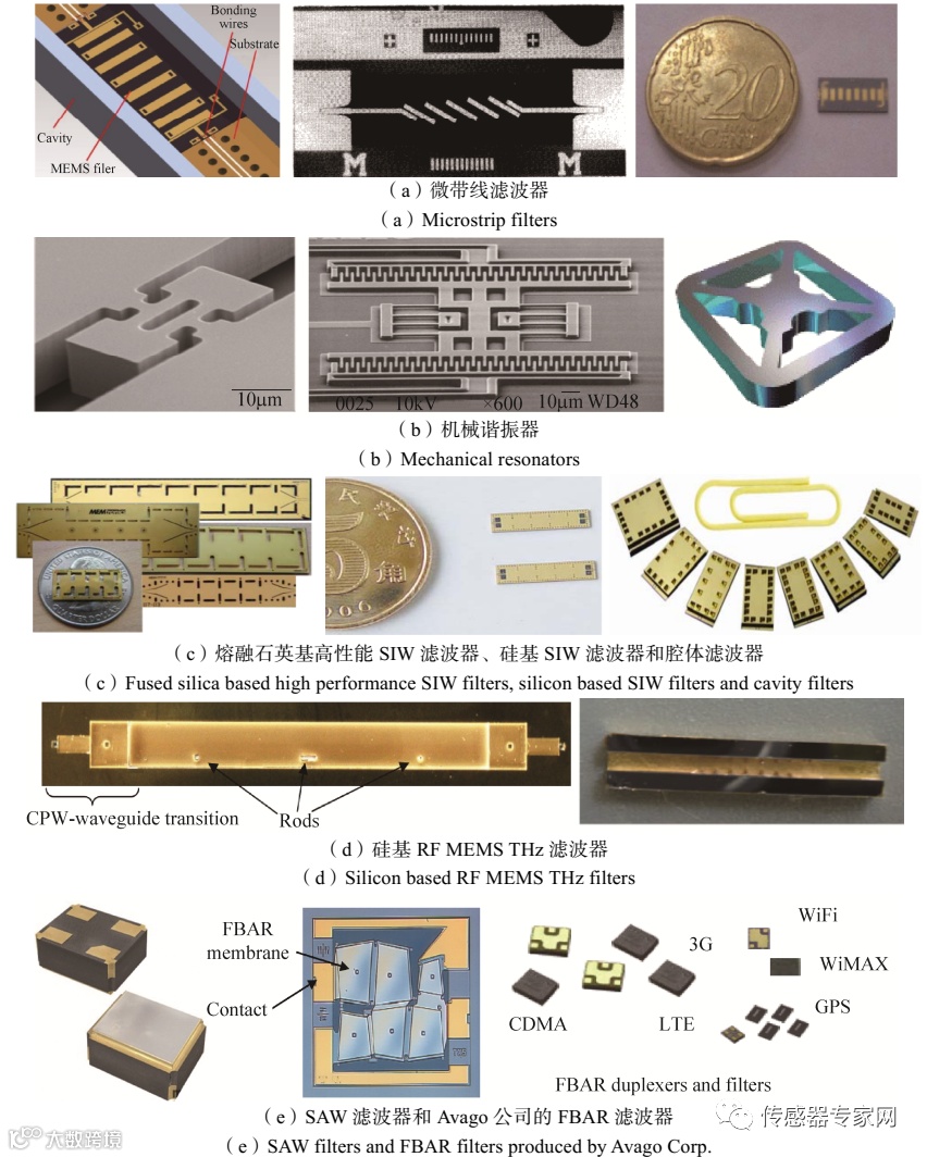 射频MEMS器件分为MEMS滤波器、MEMS开关、MEMS谐振器等。