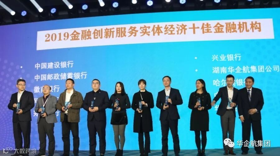 本次论坛上共遴选出数十个金融创新服务实体经济的案例、金融机构、金融产品、金融科技创新成果和金融商务区。其中,邮政储蓄银行、中国银行等以“邮储食堂”、 “伊利产业链线上融资”等案例创新支持实体经济,服务小微。建设银行、徽商银行、中信银行和湖南华企航集团公司等获评“2019金融创新服务实体经济十佳金融机构”奖。值得关注的是,我司作为唯一的民营金融公司代表,突颖而出,与国有银行同台领奖,入选十大金融机构。