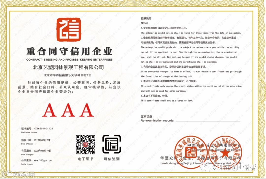 在企业招商、政府投标、签约合作等出示的信用资质。
