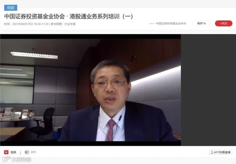 为帮助行业机构、金融专业人士了解香港资本市场及互联互通机制最新发展,多元化配置资产,由中国证券投资基金业协会主办、香港交易所支持的港股通业务系列培训在6月18至22日在线上举行。本次培训吸引逾400家机构和900多位金融专业人士参与,而香港交易所多名代表就香港市场助力内地资产管理行业发展、新经济重塑香港资本市场、香港证券市场及其交易机制,及互联互通与香港金融市场等话题作分享。