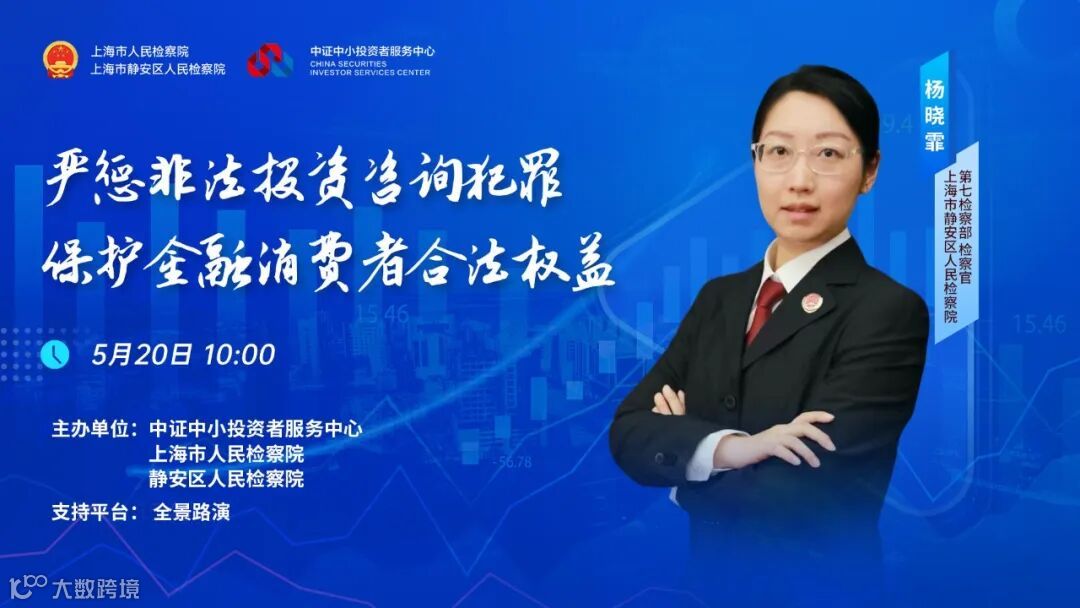 适逢5·15全国投资者保护宣传日和全国防范非法证券期货基金宣传月,投资者服务中心邀请了上海市静安区人民检察院第七检察部的检察官杨晓霏,就不同金融投资领域的非法投资咨询犯罪案例进行分享。本讲座选取了涉A股、新三板、期货交易的非法经营投资咨询业务犯罪案例,详细介绍了不同金融投资领域中非法经营投资咨询业务的犯罪手法,结合相关法律法规释明了正规金融咨询服务与非法投资咨询的区别,并对金融投资法律风险作出提示,旨在帮助金融消费者更好地了解法律规定,有效识别非法金融咨询活动,防范相关风险,维护金融消费者的合法权益。