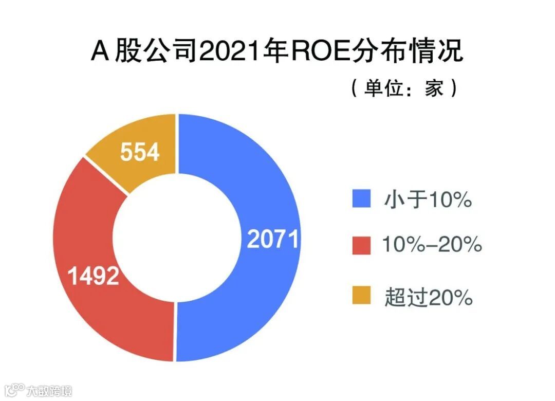 统计数据显示,2012年,剔除净资产收益率为负的公司后,在2155家公司中,有180家公司净资产收益率超20%,占比8.35%;而2021年,剔除净资产收益率为负的公司后,在4117家公司中,有554家公司净资产收益率超20%,占比13.46%。