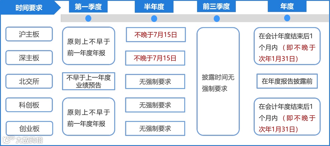 关于业绩预告的披露情形,各板块略有差别:
