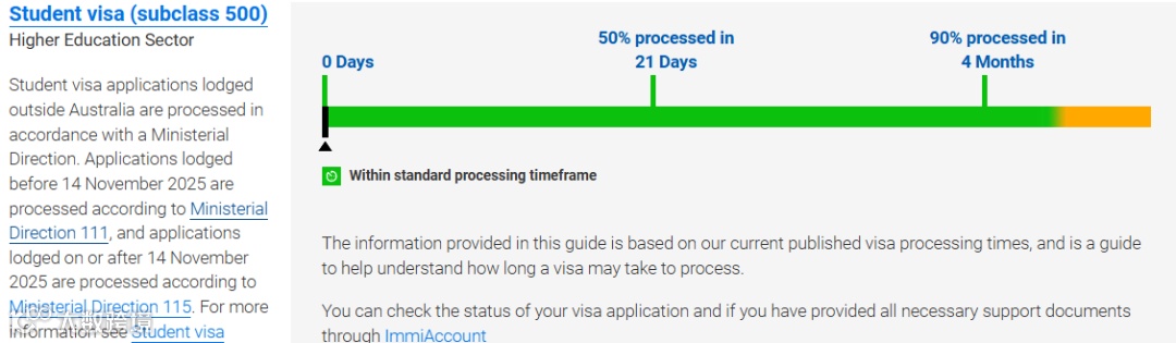 500学生签证:多个类别审理时间缩短,特别是高等教育分支,90%的申请仅需4个月(提速1个月)。