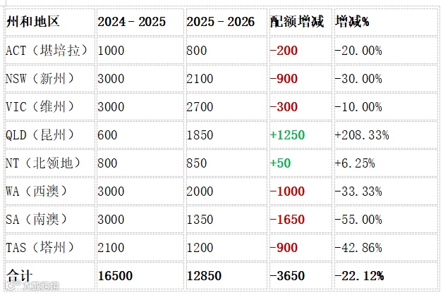 新财年州担最终公布!虽然预算案里移民总配额看起来“风平浪静”,依旧维持在 18.5 万,但真正影响留学生与技术移民的 州担配额却被大幅缩减: