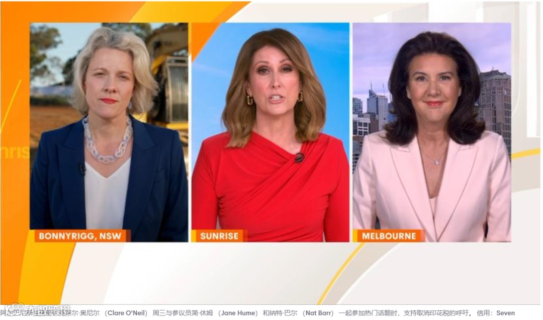 10月23日,上周三的时候,奥尼尔(O'Neil)与Nat Barr以及自由党参议员简·休莫(Jane Hume)一起参加了Sunrise的热门话题讨论。在那儿,她再次被问到印花税拟议变更的事情。奥尼尔(O'Neil)就说了:“正如我昨天所说,印花税真的很糟糕。这事儿完全是各州政府该管的,不过我大力支持,看到这些州和领地为摆脱印花税采取一些举措,我还挺高兴呢。”