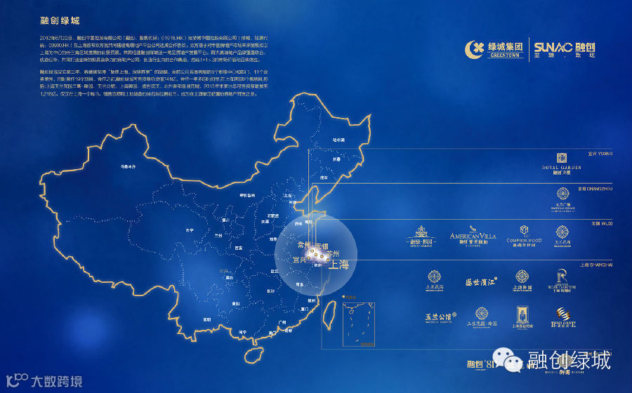 2012年6月,融创以33.7亿元代价收购绿城旗下9个项目股权,同时双方成立了各占50%股权的上海融绿。公司成立之初,便确立了“聚焦上海、深耕苏南”的战略布局。