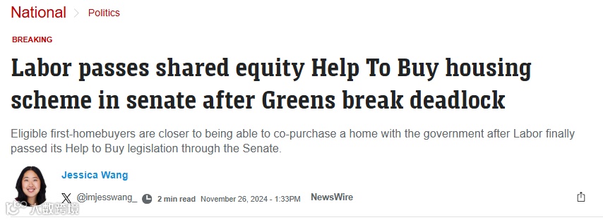 经过长期等待与激烈讨论,澳大利亚工党提出的 “帮助买房法案”(Help To Buy Bill)终于在参议院成功通过!这一法案的通过为众多渴望拥有自己住房的澳大利亚民众带来了新的希望,特别是首次购房者。这一法案的通过,意味着符合条件的首次购房者将有机会与政府合作购房,共同分担购房压力!