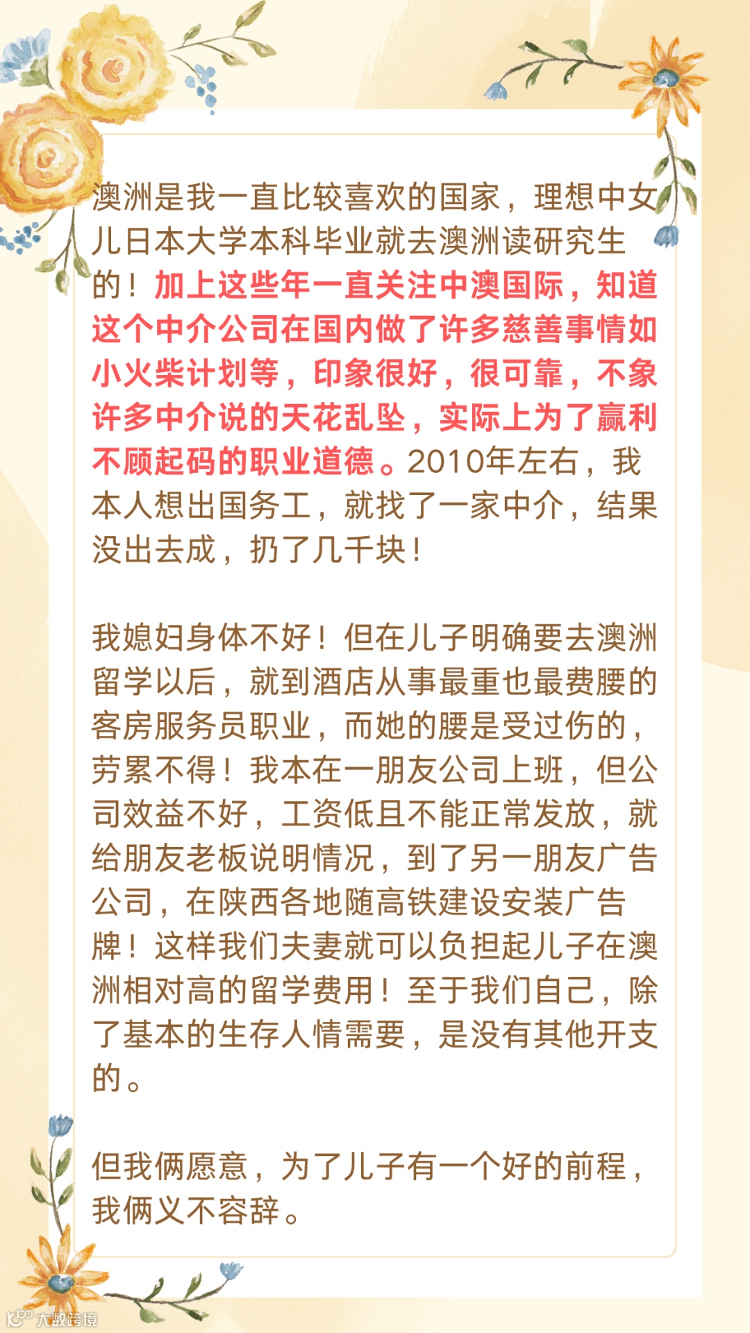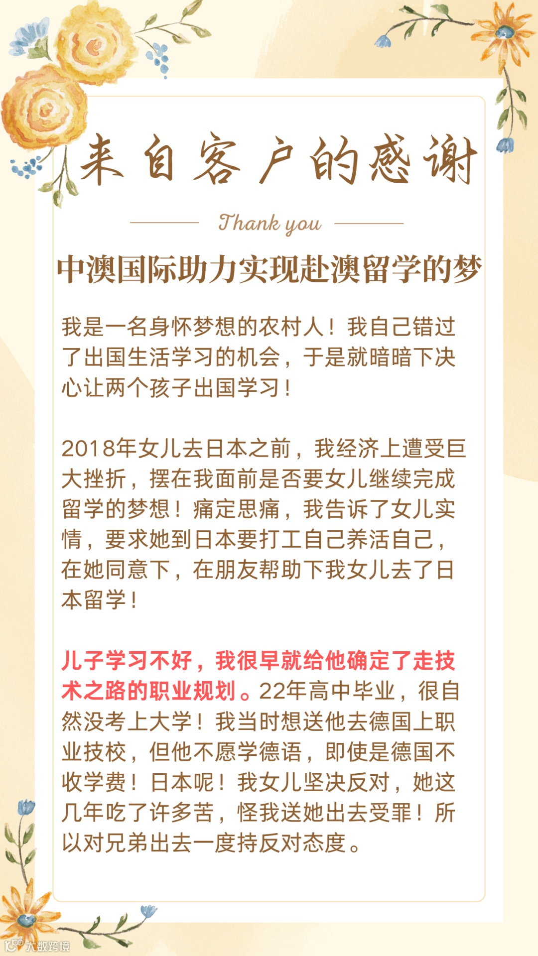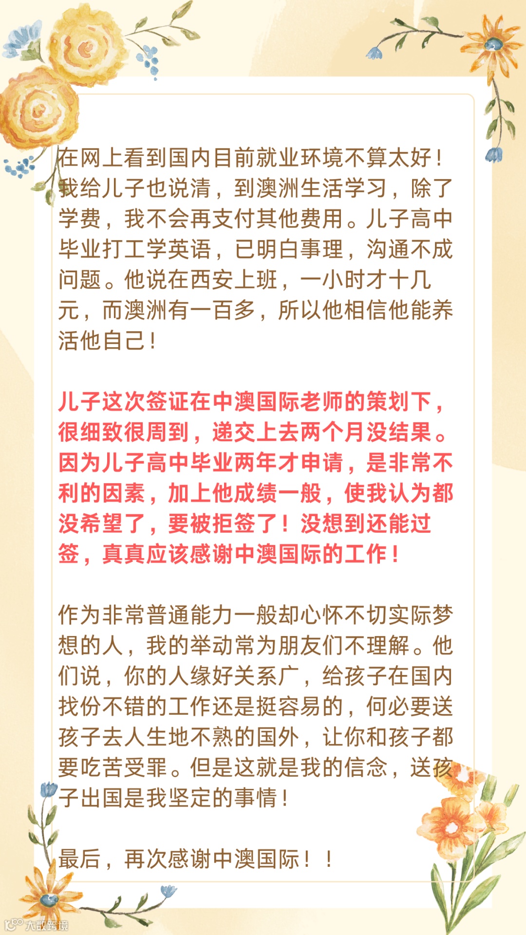 强大的专业实力:拥有海外留学背景资深顾问;拥有英语专业八级经验丰富的业内文案老师;拥有澳洲政府认证NATTI翻译资质;拥有澳大利亚持牌律师;处理疑难问题得心应手