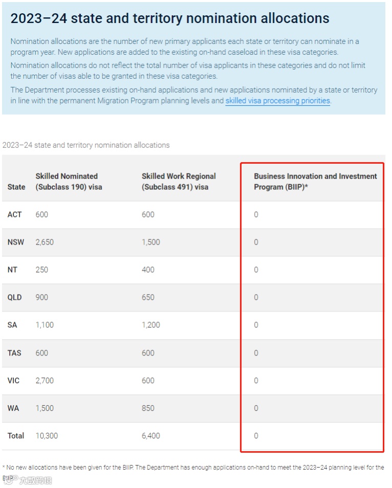 在各州的州担保数据上,商业投资移民的配额各州和领地全部清零了!这不就是澳洲各地直接把投资移民给封禁了的意思!?