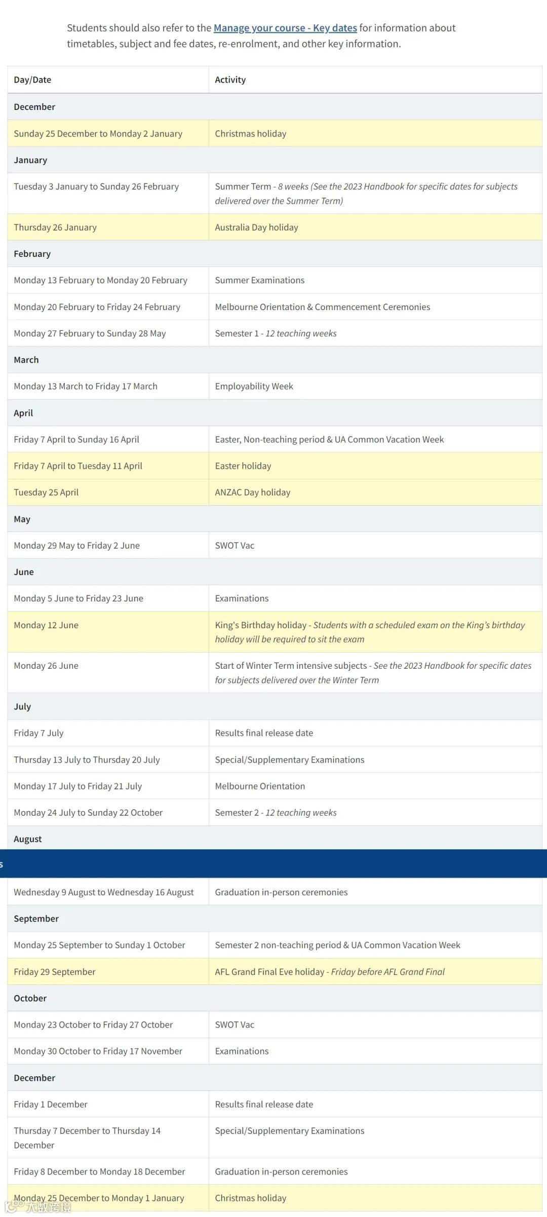 澳洲八大2023年校历!新鲜出炉,各位小伙伴们快快收藏好呦!