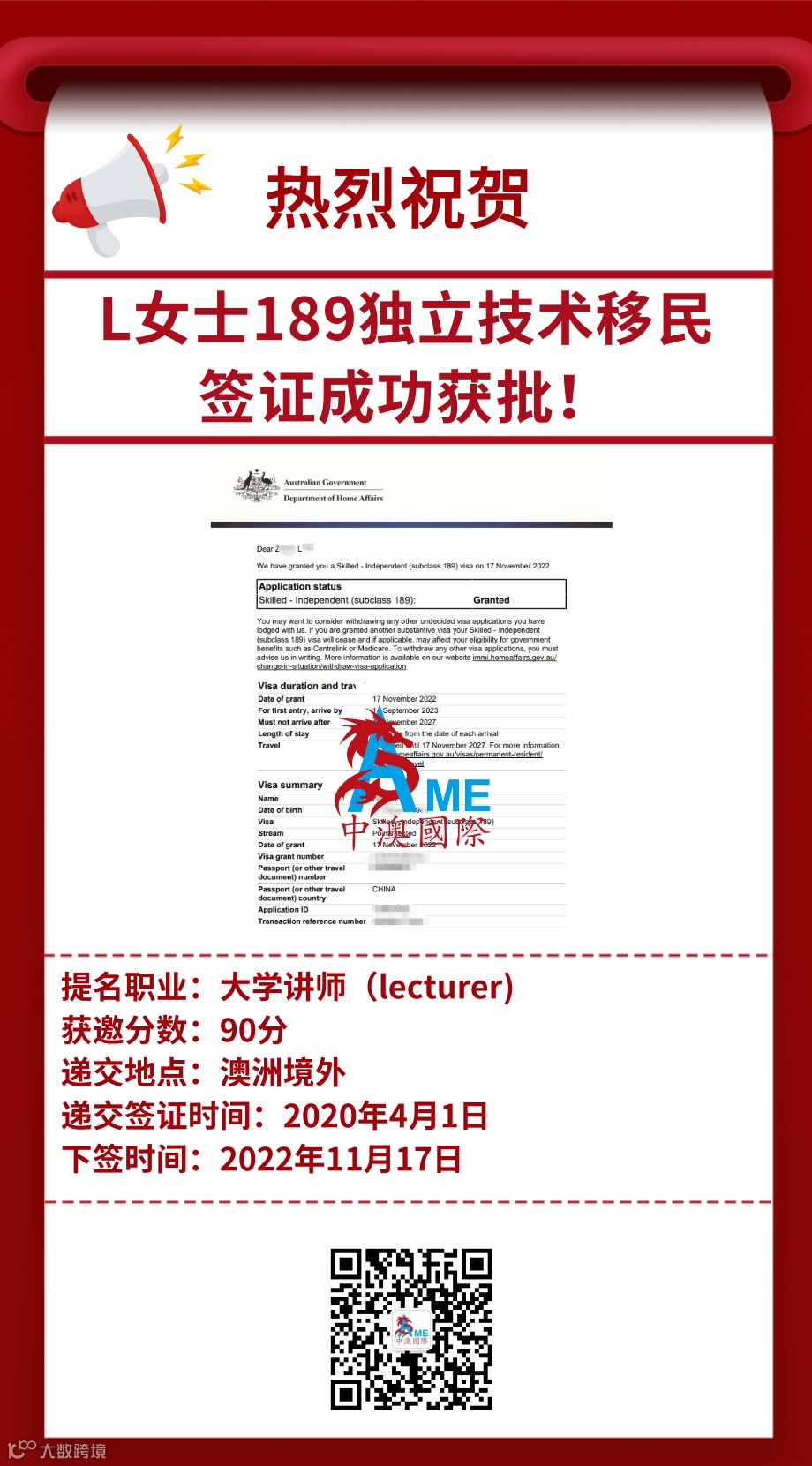 (中澳国际189签证下签案例)